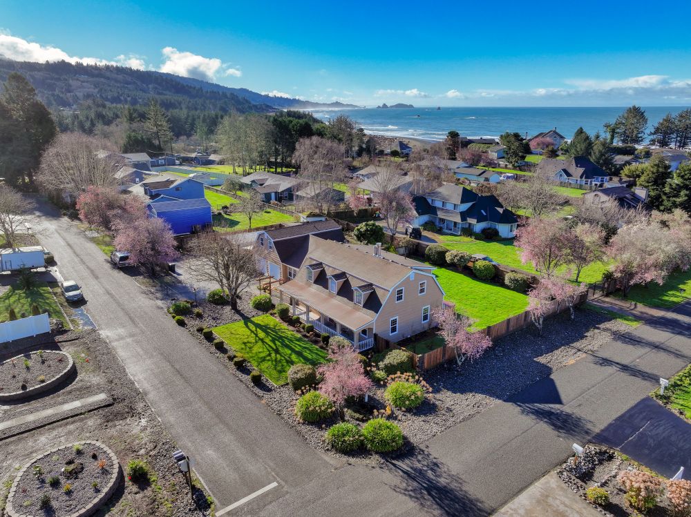 Located on a dead-end private drive within walking distance to the Port of Brookings Harbor. Features a huge brick fireplace and a wide-open floorplan with an upper deck looking down over the comfortable furnishings.
